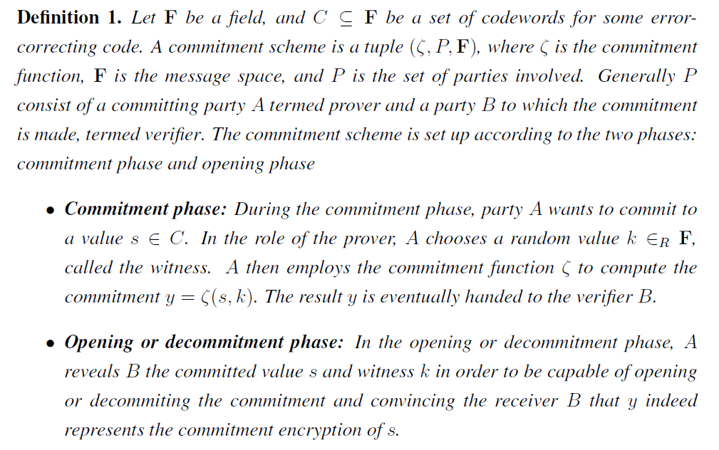 The commitment schemes is commonly integrated in error-control coding and cryptographic