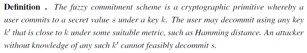 Fuzzy Commitment Scheme